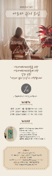 '아로마 원서 모임'은 하나의 책을 선정한 후, 책의 두께나 독서양을 고려해서, 몇 번으로 나누어 모임을 갖데 된다. 첫번째 모임은 2024년 11월 17일(일요일)에 시작되며, 총 3회(11월 17일, 24일, 12월 1일)에 걸쳐 진행된다. 모임은 온라인과 오프라인으로 동시에 진행되므로 공간의 제약을 받을 필요는 없다. 에센셜오일과 아로마테라피에 대해서 공부하고 싶다면, 누구나 어디에서나 참여가 가능하다는 의미이다.